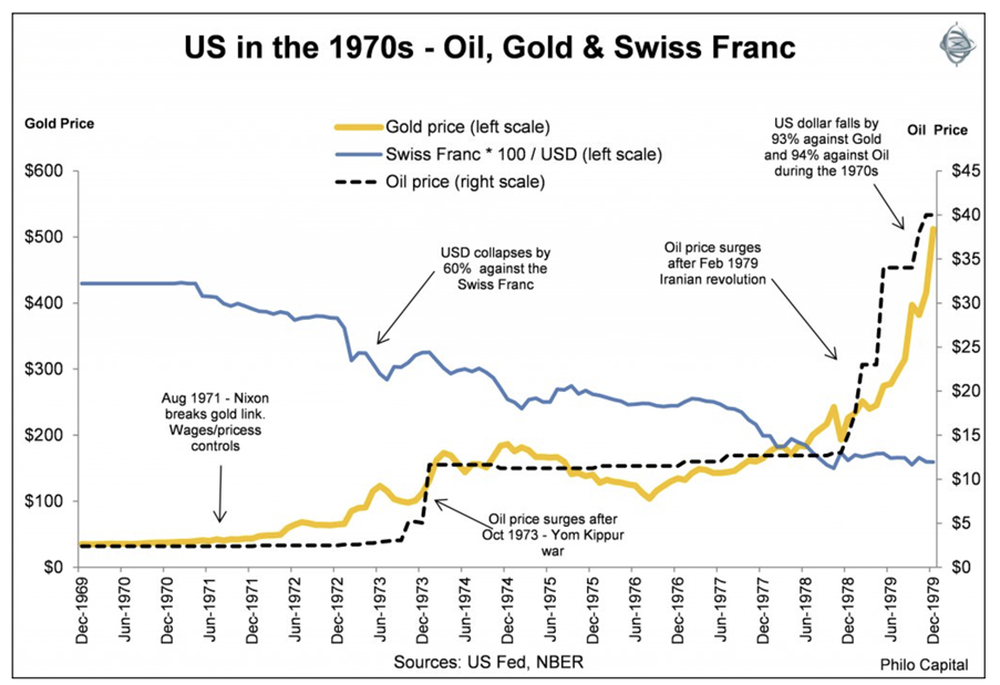 allocations, with a focus on asset class diversification. Real assets, municipal bonds, intermediate US Treasuries, real estate and select private infrastructure are opportunities to add.” She has for some time been an advocate of gold. I think this is the right approach as it relates to real assets and property (which did well in the 1970s due to surging replacement costs), but would be avoiding medium to longer dated bonds – at the government and municipal level – like the plague!