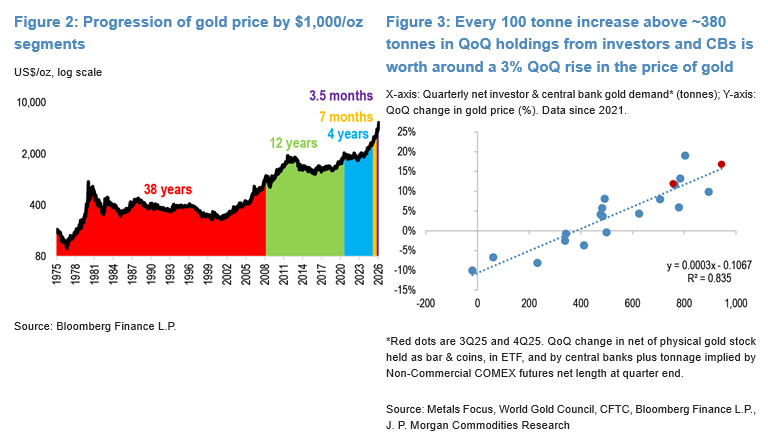The investment bank noted that “only about 5% of the world’s gold is currently held by speculators. If a central bank decides they want to pivot away from the dollar and own more gold, that is going to move the price quite violently. Which is what we’re observing. We therefore remain skeptical of arguments that gold is currently being driven by speculative mania. We think this is a multi-decade trajectory.”