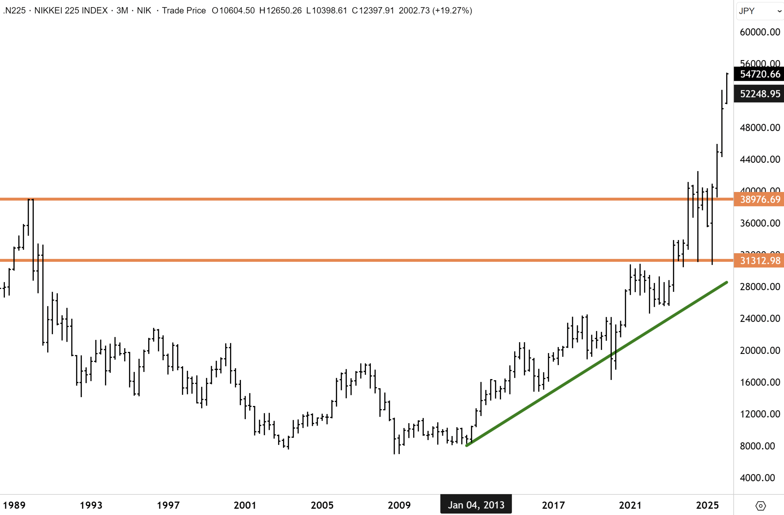 On this front, we note that the Nikkei is only around 25% above the 1989 record highs.