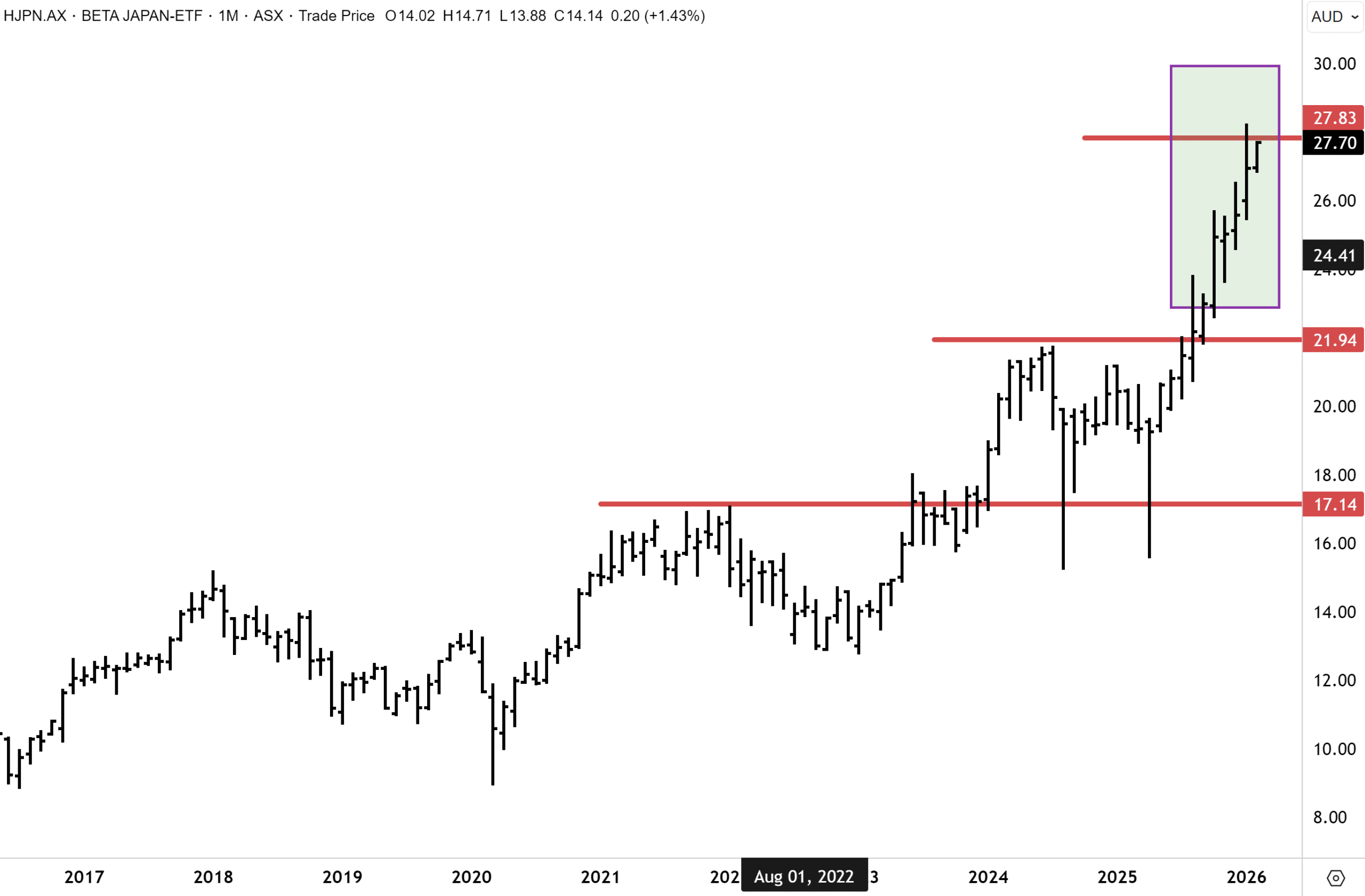 Valuation concerns seem overblown. While the Nikkei sits just 25% above the 1989 peaks. Japanese corporates also carry lower gearing than any other developed market while delivering rising ROE. For Australian investors concerned about currency volatility, the Betashares Japan ETF (HJPN) strips out FX noise through systematic hedging. We rate HJPN a BUY.