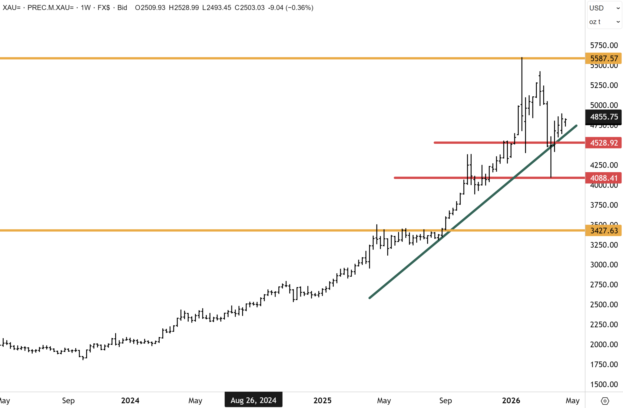 Central bank reserve diversification toward gold has been building since 2022 and continues to accelerate. The third engine is the dollar – the DXY breaking below 98, with the next key support at 96. The upward trend in gold appears to be firmly resuming. Our base case is for the $5,000 level to be retested within months.
