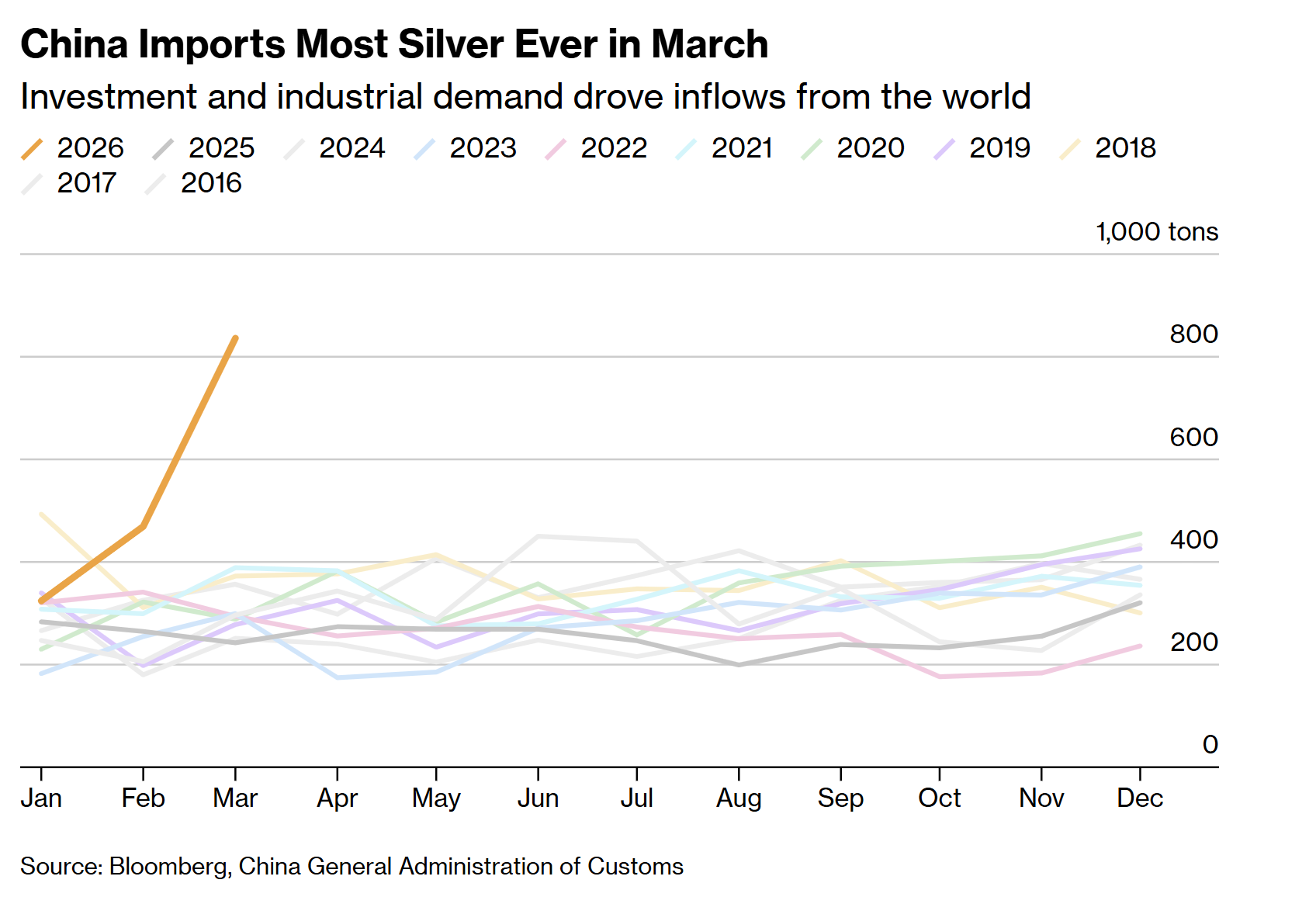 - Silver is in its sixth consecutive annual supply deficit, with Chinese industrial and solar demand driving imports to nearly three times the ten-year monthly average.