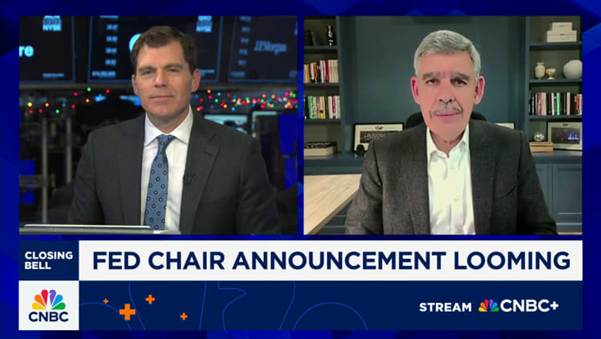 Finally, veteran economist and regarded Fed watcher Mohmmed El-Erian was interviewed this morning on CNBC and made some interesting comments. When asked whether the bond market was concerned about Kevin Hassett’s appointment as Fed Chair (given rising yields this week), he replied, “I don’t see Hassett’s possible appointment weighing on the bond market. While there has been a move higher in yields, this has more to do with Japan and higher JGB yields. I have no real concerns about Hassett assuming Fed Chair. He will inherit a fractured Fed, where the committee is divided…markets are way too focused on the short term, and not on the long term. All candidates believe the Fed needs reform, and I believe this as well.”