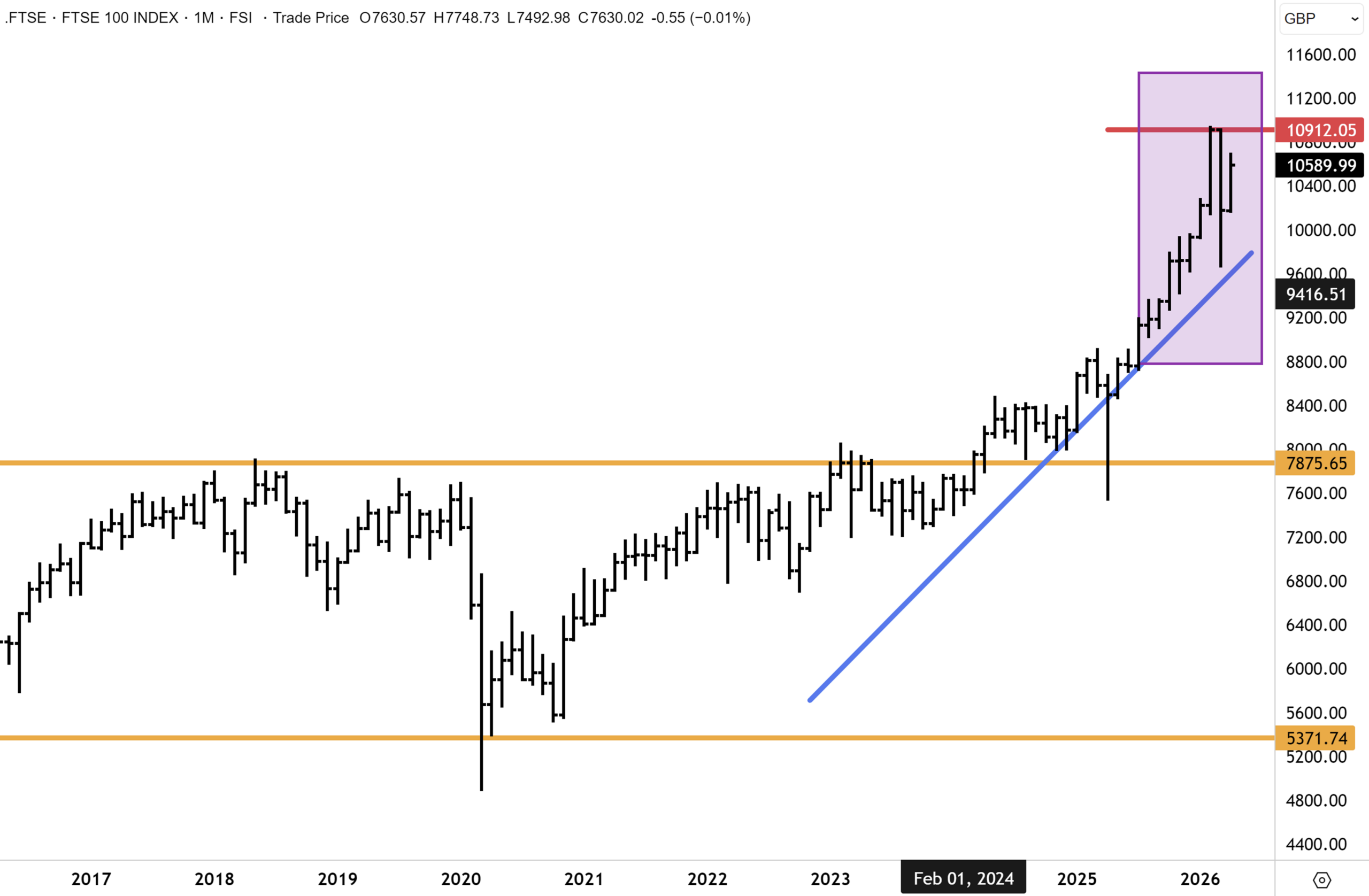The bull market in the FTSE100 is clearly reasserting itself. The rebound off the primary uptrend and surge this week to nearly 10,600 is constructive, and we anticipate a retest of the record highs in the coming months.