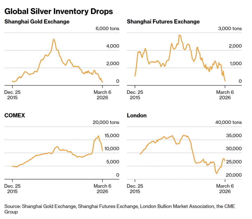 Inventories and global stockpiles of silver at key exchanges have receded sharply. This points to supply tightening.