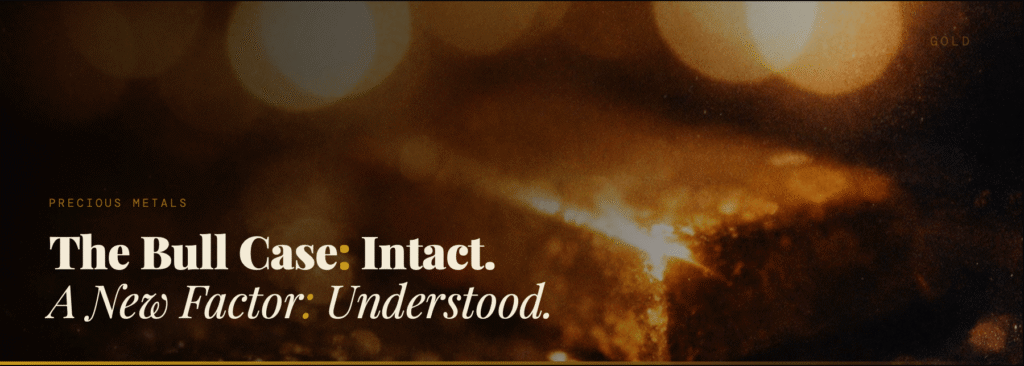 Gold was again volatile this past week. It is looking like a market caught between structural demand and a specific, finite source of selling pressure that only became clear on Thursday.