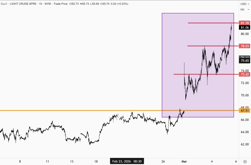 Energy exposure earned its keep this week. WTI crude’s move reflected a genuine, if potentially temporary, supply disruption. The technical setup for oil skewed to the upside before US and Israeli strikes on Iran.
